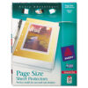 Protect your papers without obstructing your tab dividers. These Page Size Sheet Protectors offer sturdy protection of your three-hole punched pages without an extended binding edge that makes tabs hard to find. Durable material withstands the rigors of use in a three-ring binder while allowing you to view your pages with diamond clarity. The acid-free and archival-safe material keeps your pages in top condition and won’t lift print from papers. With these sheet protectors, your pages will have the lasting protection they need.