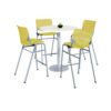 Pedestal Bistro Table with Four Yellow Kool Series Barstools, Round, 36″Dia x 41h, Designer White