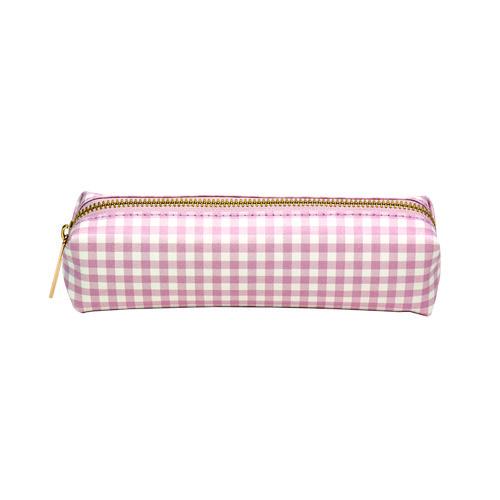 Pencil Case, 7.9″ x 2″ x 2″, Pink/White Check