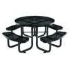 Perforated Steel Picnic Table, Round, 46″ Dia x 29.5″h, Black Top, Black Base/Legs