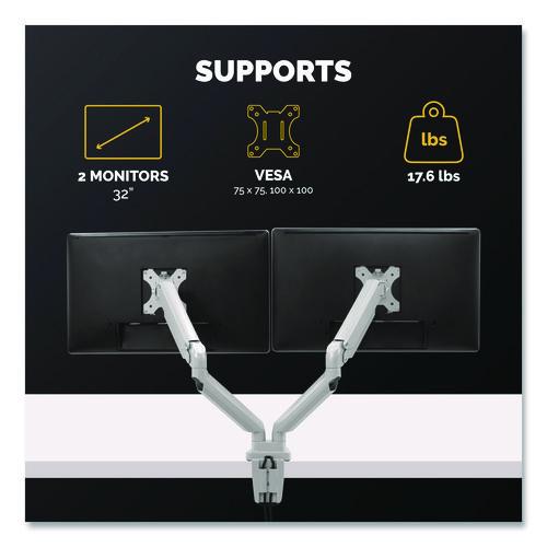 Platinum Series Dual Monitor Arm, For 40″ Monitors, 360 deg Rotation, 45 deg Tilt, 180 deg Pan, Silver, Supports 17.6 lb