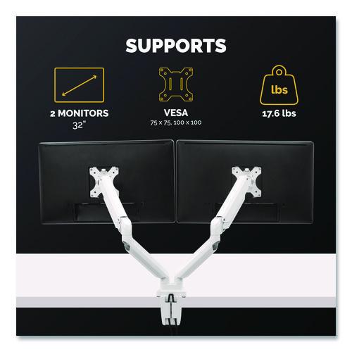 Platinum Series Dual Monitor Arm, For 40″ Monitors, 360 deg Rotation, 45 deg Tilt, 180 deg Pan, White, Supports 17.6 lb