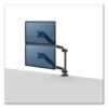 Elevate your workspace with the Fellowes Platinum Series Dual Stacking Monitor Arm, designed to reduce neck and eye strain while maximizing desk space. The Platinum Series ergonomic monitor arm supports up to 27″ (stacking) and 32″(side by side) and 17.6 lbs, making it ideal for home, office, or gaming setups. Featuring fully independent arms with gas spring technology, the Platinum Dual Stacking Monitor Arm makes adjustments effortless and enables flexible viewing angles with 360° rotation and +/-45° screen tilt. The quick-fit VESA plate ensures an easy setup, attaching securely to desks via grommet or clamp. Featuring two integrated USB ports at the base, the Platinum Sereis allows you to keep your devices powered while maintaining a clutter-free workspace thanks to the innovative cable management system. Combining quality, durability, and ease of use, the Platinum Dual Stacking monitor arm provides exceptional value and flexibility for any workstation.