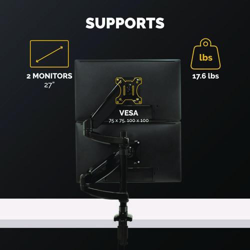 Platinum Series Dual Stacking Arm For 27″ Monitors, 360 Deg Rotation, 180 Deg Tilt, 360 Deg Pan, Black, Supports 22 Lb