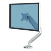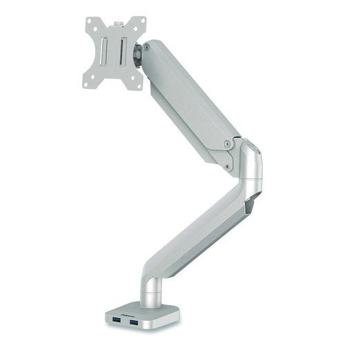 Elevate your workspace with the Fellowes Platinum Series Single Monitor Arm, designed to reduce neck and eye strain while maximizing desk space. The Platinum Series ergonomic monitor arm supports up to 40″ and 17.6 lbs, making it ideal for home, office or gaming setups. Featuring fully independent arms with gas spring technology, the Platinum Single Monitor Arm makes adjustments effortless and enables flexible viewing angles with 360° rotation and +/-45° screen tilt. The quick-fit VESA plate ensures an easy setup, attaching securely to desks via grommet or clamp. Featuring two integrated USB ports at the base, the Platinum Series allows you to keep your devices powered while maintaining a clutter-free workspace thanks to the innovative cable management system. Combining quality, durability, and ease of use, the Platinum Single monitor arm provides exceptional value and flexibility for any workstation.