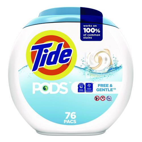 PODS Laundry Detergent, Free and Gentle, HE Compatible, 63 oz Tub, 76 Pacs/Tub, 4 Tubs/Carton