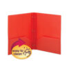 Durable two-pocket folders are perfect for all types of presentations, proposals and projects. They allow for easy storage and transport while keeping the documents organized and easily accessible. The large pockets holds up to 50 sheets each. Metal fasteners hold up to 80 three-hole punched papers. Inside back pocket is die cut to hold a business card. Durable poly material is tear- and water-resistant and easy-to-clean. Acid free and PVC free.
