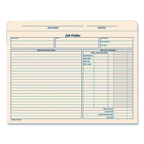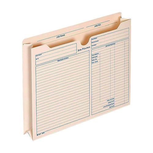 Organize work orders, invoices and other project information with these expanding job folders. Three-sided closures keep paper secure inside, while the thumb-cut fronts offer easy access to the documents stored inside. Each jacket features a preprinted form with inputs for job names, materials, labor costs and other important details. With 2″ expansions, these Adams® manila job folders hold thick stacks of paperwork.