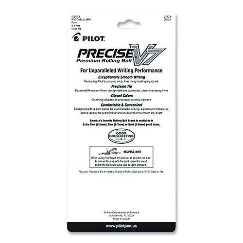 Precise V7 Rollerball Pen, Stick, Fine 0.7 mm, Blue Ink, Blue/Clear Barrel, 5/Pack