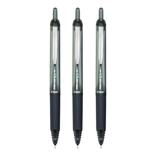 Precise V7RT Rollerball Pen, Retractable, Fine 0.7 mm, Black Ink, Black Barrel, 3/Pack