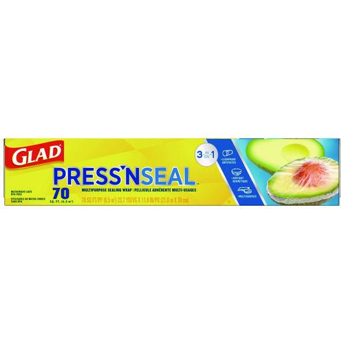 Glad Press’n Seal uses Griptex technology to protect food with a leak proof and airtight seal. Great for storing and protecting leftovers, this multipurpose wrap seals tightly onto a variety of surfaces, such as paper, plastic, metal, wood or other dry surfaces. The Griptex technology activates when pressure is applied and seals to itself, allowing you to create custom shaped food storage bags to freeze food or to make individual portions. It also works well around the house or at work to keep things clean and protected. Press’n Seal wrap is simple to use and easy to handle. The wrap is BPA free and microwave safe. Ideal for use in restaurants, cafeterias, hotels and other commercial facilities. Glad protects and seals with ease.