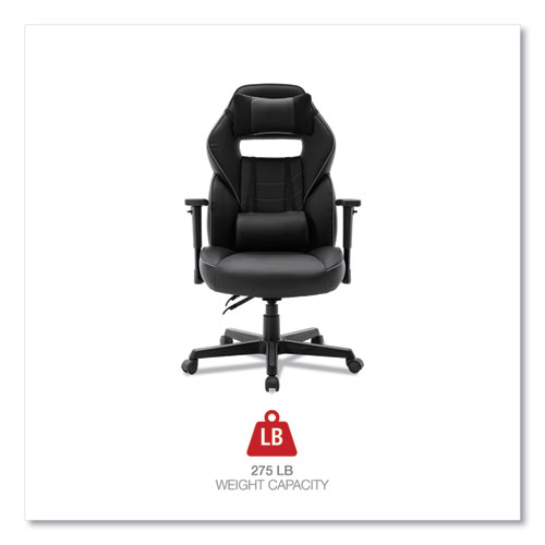 Whether you’re getting your game on, knocking out some homework, or leading a team from your home office you’ll be doing so in style and comfort with this Alera Gaming Chair. Inspired by top racing car seats, this chair delivers ultra-comfort and sleek styling. The 135 degree reclining seat allows you to lie back and take a break from the action. Dial in your perfect comfort level with such features as height adjust, tilt tension, tilt lock, adjustable arms and removable head and lumbar pillows. Score a quick win with the easy to assemble Alera Gaming Chair.