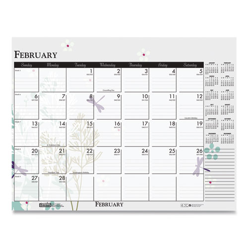Recycled Desk Pad Calendar, Wild Flowers Artwork, 18.5 x 13, White Sheets, Black Binding/Corners,12-Month (Jan-Dec): 2025