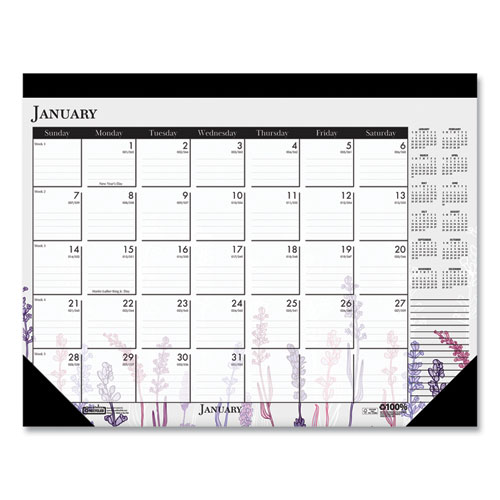 Recycled Desk Pad Calendar, Wild Flowers Artwork, 22 x 17, White Sheets, Black Binding/Corners,12-Month (Jan-Dec): 2025