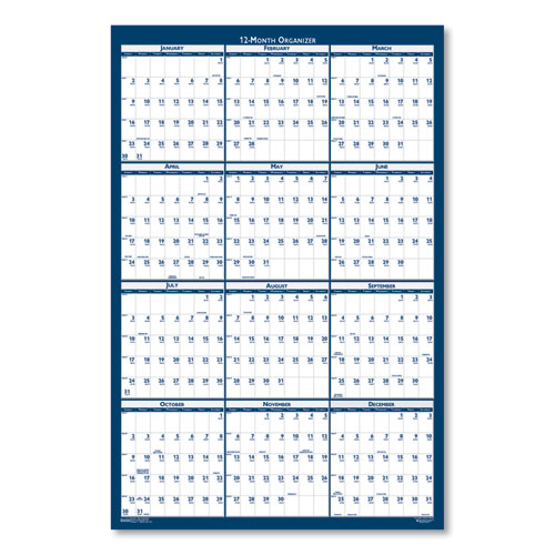 Recycled Poster Style Reversible/Erasable Yearly Wall Calendar, 18 x 24, White/Blue/Gray Sheets, 12-Month (Jan to Dec): 2025