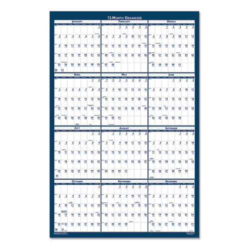 Recycled Poster Style Reversible/Erasable Yearly Wall Calendar, 24 x 37, White/Blue/Gray Sheets, 12-Month (Jan to Dec): 2025