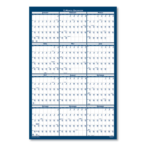 Recycled Poster Style Reversible/Erasable Yearly Wall Calendar, 66 x 33, White/Blue/Gray Sheets, 12-Month (Jan to Dec): 2025