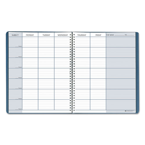 Recycled Teacher’s Planner, Weekly, Two-Page Spread (seven Classes), 11 X 8.5, Blue Cover