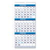 See three months at a time. Wall calendar details the prior, present and following month on each page. Large date numerals with holidays highlighted. Strong wire-binding firmly keeps the pages together and in place. Features a full, 12-month reference calendar for long-term planning. Sturdy wire hanger makes it easy to hang the calendar on the wall. Made entirely of recycled materials.