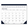 Recycled Two-Color Monthly Desk Pad Calendar, 22 x 17, Perforated White/Blue/Gray Sheets, 12-Month (Jan-Dec): 2025