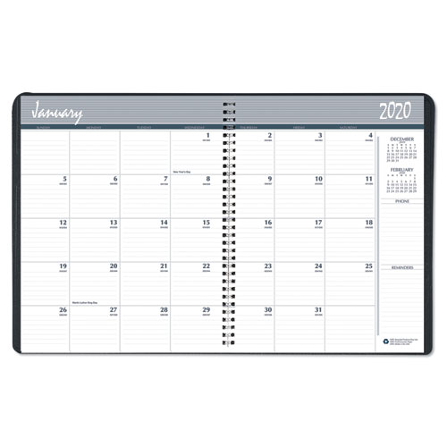 Simple monthly page spread enables you to see your entire month’s schedule for two years. Full monthly view per two-page spread. Yearly expense log and 30 memo pages included.