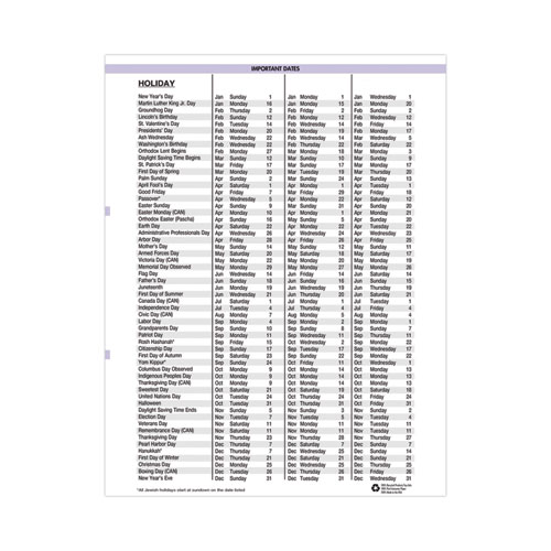 Different wild flower designs carried out throughout the planner and a matching wild flower cover. Convenient monthly/weekly format allows for a monthly over view and weekly detail, 12 months, January to December. Weekly section has open scheduling slots so you can enter times or notes for things to do that day. Both the weekly and monthly pages have a notes area on the right. The week starts on Monday and has full Saturday and Sunday. Each page has a two-month reference calendar showing the previous month and next month. Also features monthly indicators making it easy to find the month you need. Heavy paper cover has coordinated graphics with the inside of the book. Includes a three-year list of common holidays. Includes a double-sided paper pocket for notes, numbered weeks and Julian dates and days remaining.