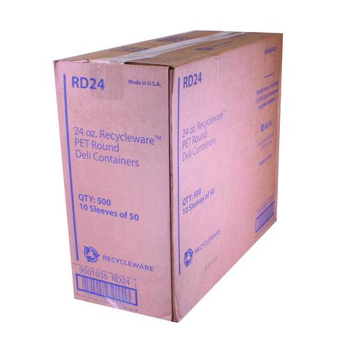 Recycleware Round Deli Container, 24 oz, 4.6″ Diameter x 3.6″ h, Clear, Plastic, 500/Carton