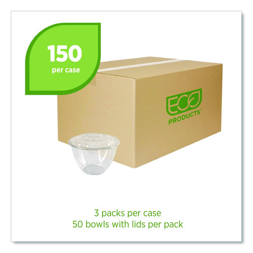 Renewable and Compostable Salad Bowls with Lids, 48 oz, Clear, Plastic, 150/Carton