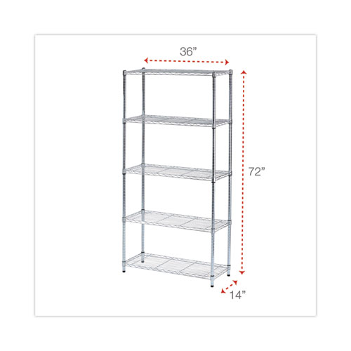 Residential Wire Shelving, Five-Shelf, 36w X 14d X 72h, Silver