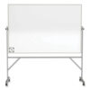 Reversible Magnetic Hygienic Porcelain Whiteboard with aluminum frame and stand is the perfect solution for high-touch, high-use environments where mobility is desired. The traditional functionality of a mobile, magnetic, reversible whiteboard combines with a clean, next-generation writing surface to take whiteboard performance to the next level. The porcelain-on-steel surface features embedded micro-silver particles that are slowly released over the lifetime of the product to protect it from bacterial and viral contaminants-contaminants are eliminated within 24 hours of contact. Scratch- and dent-resistant surface also ensures that your dry erase board never absorbs ink, eliminating the possibility of staining and ghosting. As the surface is magnetic, you can incorporate magnetic clips, characters and a variety of board accessories to accomplish any number of display and instructional goals. Strong aluminum frame and stand deliver reliable durability, and a robust, locking surface-reversing mechanism makes it easy to flip and set the chosen board surface in place. Twin-wheel swivel casters keep you mobile; and by making use of the two locking casters, you can keep the board stable where you intend to use it. Ships to you in Ghent’s worry-free packaging, which is designed specifically for keeping mobile dry erase boards safe during shipping.
