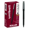 Stock your office, home or classroom with Roller Rollerball Stick Pens from uni-ball featuring strong, long lasting tips. These rollerball pens deliver the silky-smooth glide of a fountain pen without smudging for effortless writing. Roller pens produce neat and precise lines for intricate writing, making it easy to create super fine details in your drawings and diagrams. Capped roller pens are useful for a variety of tasks from note taking to signing checks and legal documents to uniquely embellishing fun and creative writing projects. Innovative uni Super Ink technology forms a strong bond with the paper, protecting from water, fading and fraud. Made from recycled material.