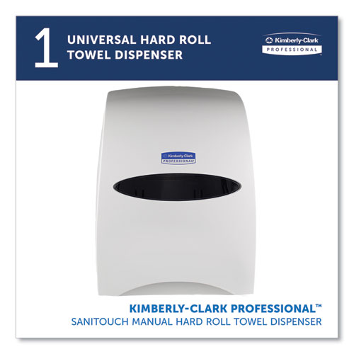 Reduce maintenance time and run-outs with a high-capacity washroom towel system. The Sanitouch Hard Roll Paper Towel Dispenser is a reliable and efficient hand-drying system that’s perfect for your workplace. Whether you have a retail location, office or high-traffic location, your washroom guests will only touch the towel they use, thanks to the touch free, one-at-a-time dispensing system. This wall mount dispenser is made of durable plastic and comes in an attractive shade of black, called Smoke, so it will go with any washroom decor. Compatible with Kleenex® and Scott® Brand Hard Roll towels, by providing high-quality towels in your washroom, you’ll increase your maintenance efficiency.