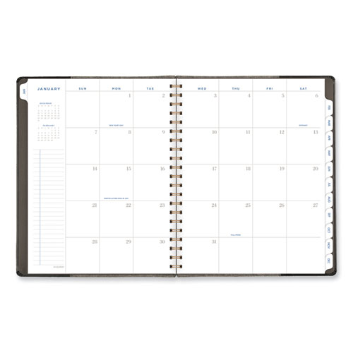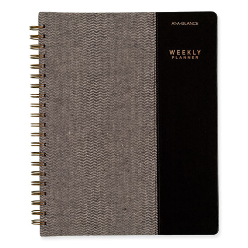 Signature Collection Black/Gray Felt Weekly/Monthly Planner, 11.25 x 9.5, Black/Gray Cover, 13-Month: Jan 2025 to Jan 2026