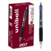 Stock your office, home or classroom with 207 Retractable Gel Pens from uni-ball with a stainless steel tip that resists bending and breaking. Even-flowing, pigment-based gel ink delivers a smooth writing experience for intense, vibrant lines, ensuring that every mark is brilliantly communicated. Use these retractable gel pens for everyday writing tasks, check signing and all of your important signatures, trusting its quick-drying uni Super Ink. Innovative uni Super Ink technology effectively entraps the gel ink into the paper, producing fraud, fade and water-resistant documents that resist check washing or bleaching. A textured grip offers greater comfort and control as you continue writing, while a translucent ink window indicates the level of gel ink remaining, so you don’t run out unexpectedly. The sleek design of the 207 with modern metal accents gives the retractable gel pen a stylish touch.