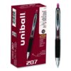 Stock your office, home or classroom with 207 Retractable Gel Pens from uni-ball with a stainless steel tip that resists bending and breaking. Even-flowing, pigment-based gel ink delivers a smooth writing experience for intense, vibrant lines, ensuring that every mark is brilliantly communicated. Use these retractable gel pens for everyday writing tasks, check signing and all of your important signatures, trusting its quick-drying uni Super Ink. Innovative uni Super Ink technology effectively entraps the gel ink into the paper, producing fraud, fade and water-resistant documents that resist check washing or bleaching. A textured grip offers greater comfort and control as you continue writing, while a translucent ink window indicates the level of gel ink remaining, so you don’t run out unexpectedly. The sleek design of the 207 with modern metal accents gives the retractable gel pen a stylish touch.