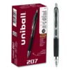 Stock your office, home or classroom with 207 Retractable Gel Pens from uni-ball with a stainless steel tip that resists bending and breaking. Even-flowing, pigment-based gel ink delivers a smooth writing experience for intense, vibrant lines, ensuring that every mark is brilliantly communicated. Use these retractable gel pens for everyday writing tasks, check signing and all of your important signatures, trusting its quick-drying uni Super Ink. Innovative uni Super Ink technology effectively entraps the gel ink into the paper, producing fraud, fade and water-resistant documents that resist check washing or bleaching. A textured grip offers greater comfort and control as you continue writing, while a translucent ink window indicates the level of gel ink remaining, so you don’t run out unexpectedly. The sleek design of the 207 with modern metal accents gives the retractable gel pen a stylish touch.