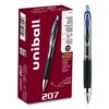 Stock your office, home or classroom with 207 Retractable Gel Pens from uni-ball with a stainless steel tip that resists bending and breaking. Even-flowing, pigment-based gel ink delivers a smooth writing experience for intense, vibrant lines, ensuring that every mark is brilliantly communicated. Use these retractable gel pens for everyday writing tasks, check signing and all of your important signatures, trusting its quick-drying uni Super Ink. Innovative uni Super Ink technology effectively entraps the gel ink into the paper, producing fraud, fade and water-resistant documents that resist check washing or bleaching. A textured grip offers greater comfort and control as you continue writing, while a translucent ink window indicates the level of gel ink remaining, so you don’t run out unexpectedly. The sleek design of the 207 with modern metal accents gives the retractable gel pen a stylish touch.