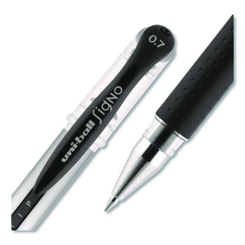 Signo GRIP Gel Pen, Stick, Medium 0.7 mm, Black Ink, Clear/Black/Silver Barrel, Dozen