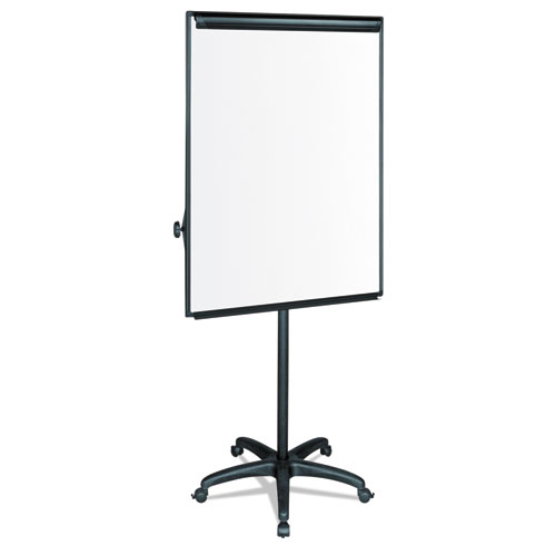 Silver Easy Clean Dry Erase Mobile Presentation Easel, 27.5″ x 39″, White Surface, Black Aluminum/Steel Frame