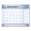 Stylish desk pad helps protect your desk and features an upscale, slate blue design on each page. Durable backboard provides a sturdy writing surface. One month per page with unruled blocks, lined notes space and shaded weekends. Full-year calendar reference; federal holidays highlighted. Bonus pages: current- and future-year reference calendars and “Dates to Remember” page. Printed on high-quality with superior ink bleed resistance.
