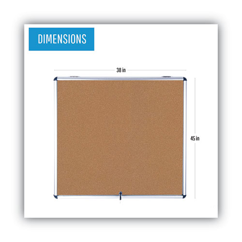 Slim-Line Enclosed Cork Bulletin Board with One Door, 47″ x 38″, Tan Surface, Satin Aluminum Frame