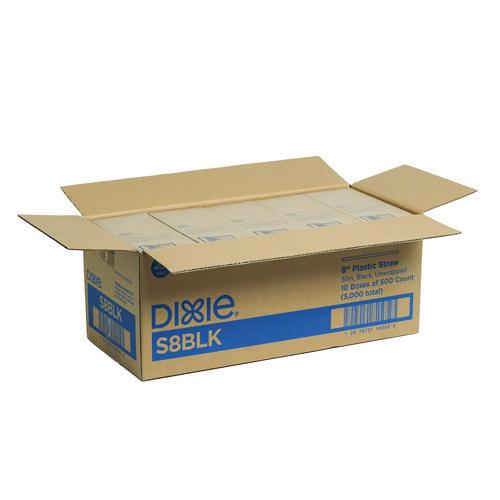 Slim Unwrapped Plastic Straws, 8″, Plastic, Black 500/Box, 10 Boxes/Carton