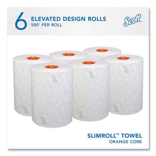 Slimroll Towels, 1-Ply, 8″ x 580 ft, White/Orange Core, 6 Roll/Carton