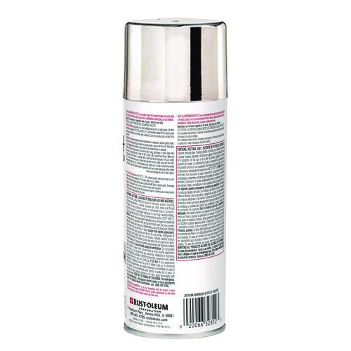 Rust-Oleum Specialty Mirror Effect Spray makes it easy to transform glass and acrylic glass into a reflective mirror-like surface. Unique, slender can allows for easy handling. Simple, one-step application dries quickly right before your eyes and provides superior durability. Ideal for glass vases, candle holders, framed glass, jars and tabletops, designed to work on ordinary glass and acrylic glass surfaces. Oil-based formula provides a durable, long lasting finish, dries in 10 minutes. Glossy finish provides a mirror-like look to any glass or acrylic glass item.