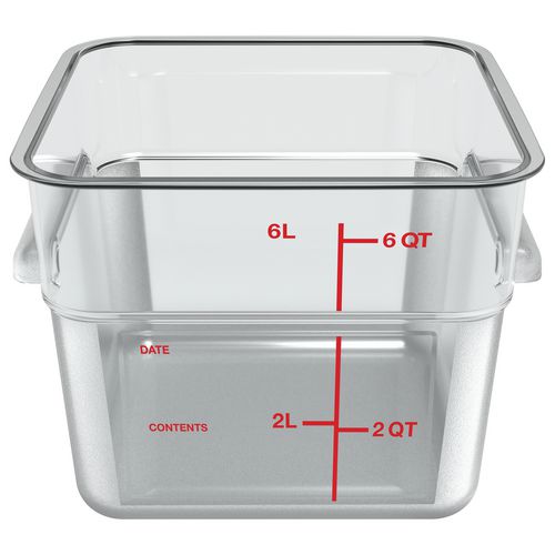 Maximize storage space for a variety of items in Carlisle Squares food storage containers! Tight fitting, color-coded lids (sold separately) encourage organization and reduce cross-contamination. Color-coded liter and quart markings match color-coded lids to ensure a quick and easy match. Keep food organized and separated for sanitary storage.