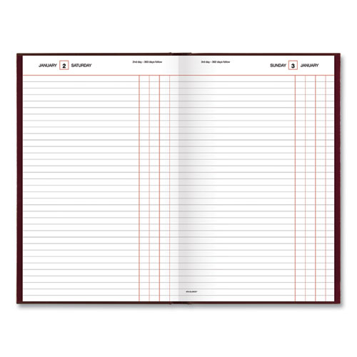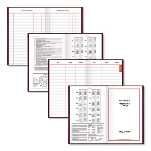 Keep your daily notes and records safe and secure in this hardcover archival book. One page per day journal-ruled format includes a ruled daily column with four boxes at the end for easy customization; date and month at the top. Telephone/address section and monthly expense summary. Printed in red and black inks on high-quality paper with superior ink bleed resistance