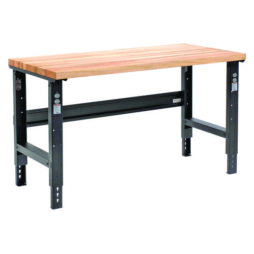 Standard Duty Butcher Block Top Adjustable Height Workbench, 2,000 lbs, 60 x 30 x 30.88 to 36.88, Birch/Black