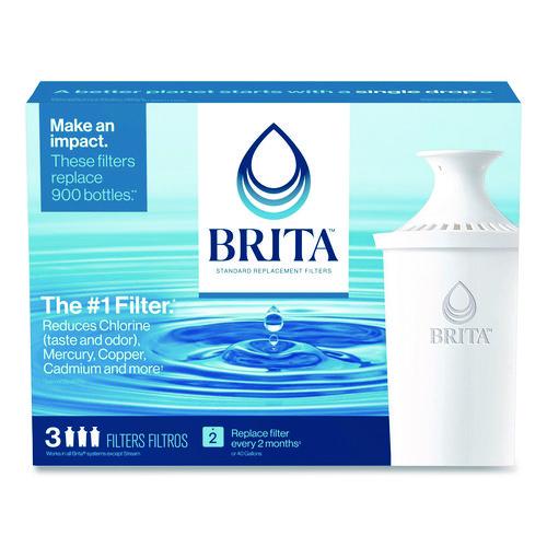 Keep tap water healthier and tasting better when you regularly change your Brita replacement filter. Made to fit all Brita pitchers and dispensers (except Brita Stream pitchers), this replacement filter reduces copper, mercury and cadmium impurities that can adversely affect your health over time, while cutting chlorine taste and odor to deliver great tasting water. Designed to leave no black flecks in your water and with no pre-soak required, the Brita filters are quick and easy to use. Change your Brita filters every 40 gallons or approximately every two months for best performance. Ideal for use in restaurants, cafeterias and other commercial facilities. Start drinking healthier, great tasting water with Brita today.