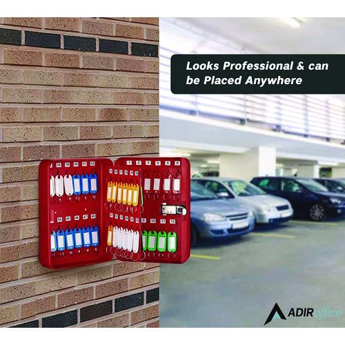 Stronger than any key cabinet in its class, this wall-mounted, AdirOffice Secure Key Cabinet is expertly constructed using 16-gauge, heavy duty steel with a scratch-resistant finish to provide long-term durability and extra protection for your keys. It also features a continuous piano hinge to keep the door in line with the cabinet, offering optimal security and durability to supply years of reliable use. Comes complete with key tags to make organization quick and efficient. In addition, it features a depth that accommodates larger key rings so you no longer have to remove keys from their rings in order for them to fit inside. Keys can be hung separately on hooks or with multiple keys on supplied key tags for safe storage and easy access. The combination lock provides an entry code that can be changed as often as you like. With over 1,000 possible combinations available, users will never have to worry about theft. For added convenience, screws and wall anchors are included for easy mounting and setup. This four-point mounting hardware, along with pre-drilled holes on the the back of the unit ensure easy, stable installation on any wall. If you are one of those people who happen to have a lot of keys on hand, this cabinet is ideal for keeping your keys secure and organized. It’s also a great solution for businesses that need to store multiple keys on a regular basis, including property managers, car dealerships and auto repair shops, as well as establishments that offer valet parking services, such as hotels, restaurants and banquet halls.