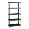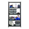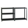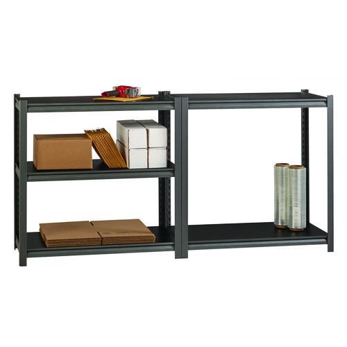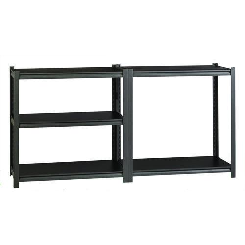 Our shelving is designed for heavy-duty use. The boltless design allows for quick and easy assembly. The powder-coated finish is rust resistant and durable. The shelving unit can be assembled either horizontally or vertically, depending on your storage needs. Each unit includes black laminate decking. Assemble with a rubber mallet in less than 30 minutes. Shelving is made of heavy-duty riveted steel construction.
